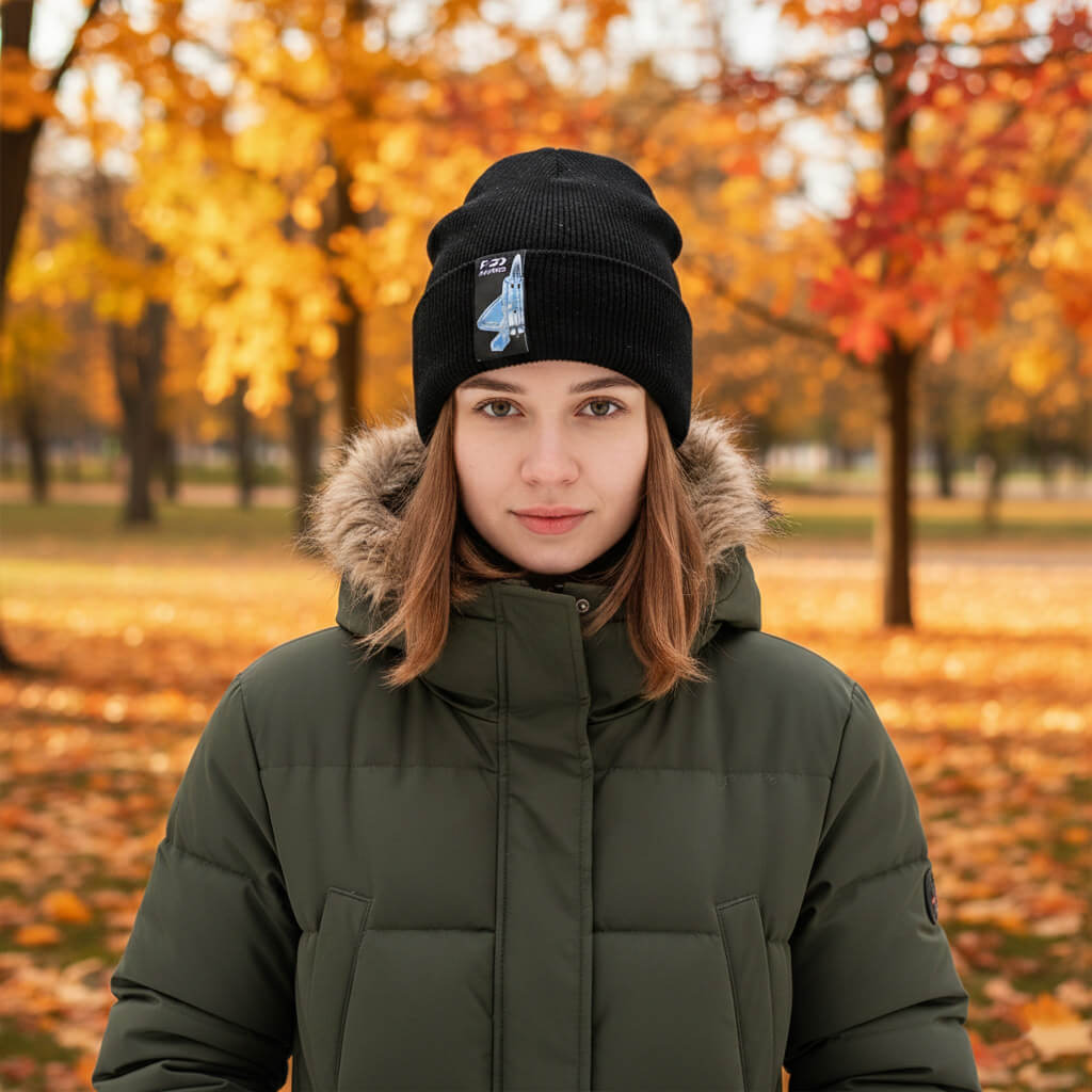 Ciepła czarna czapka zimowa Lockheed Martin F-22 Raptor