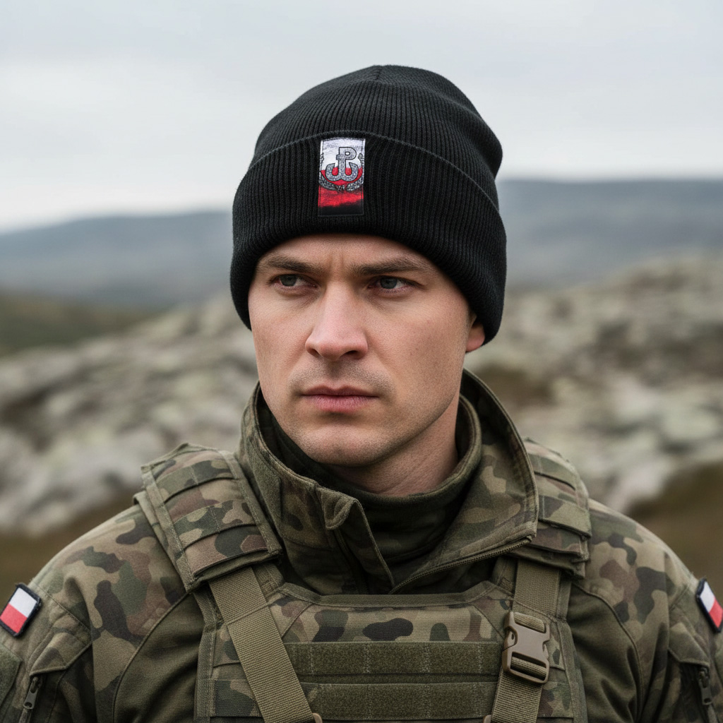 Ciepła czarna czapka zimowa Polska Walcząca