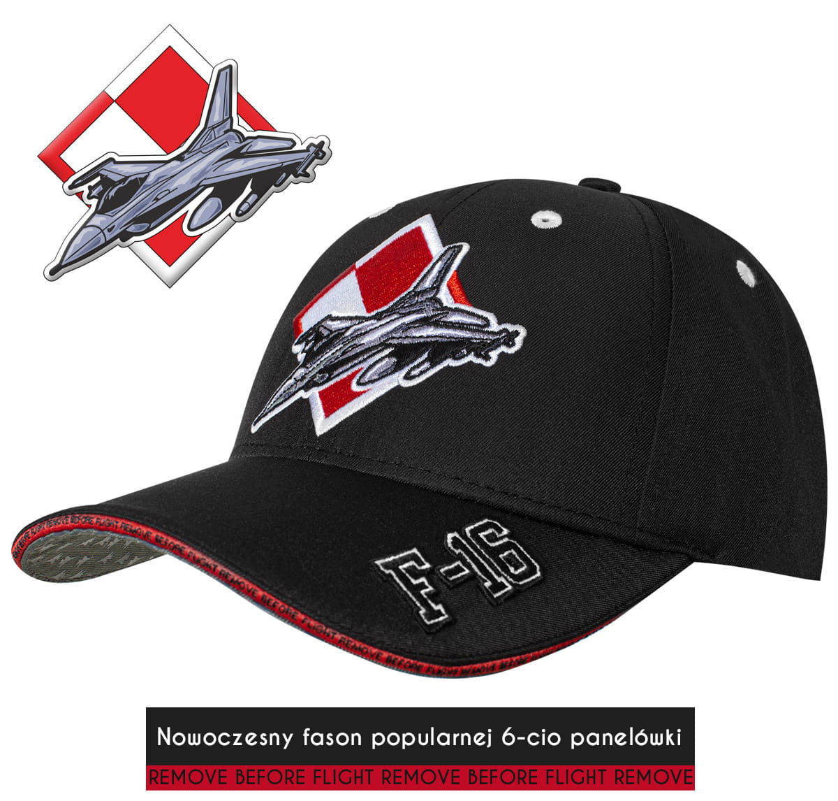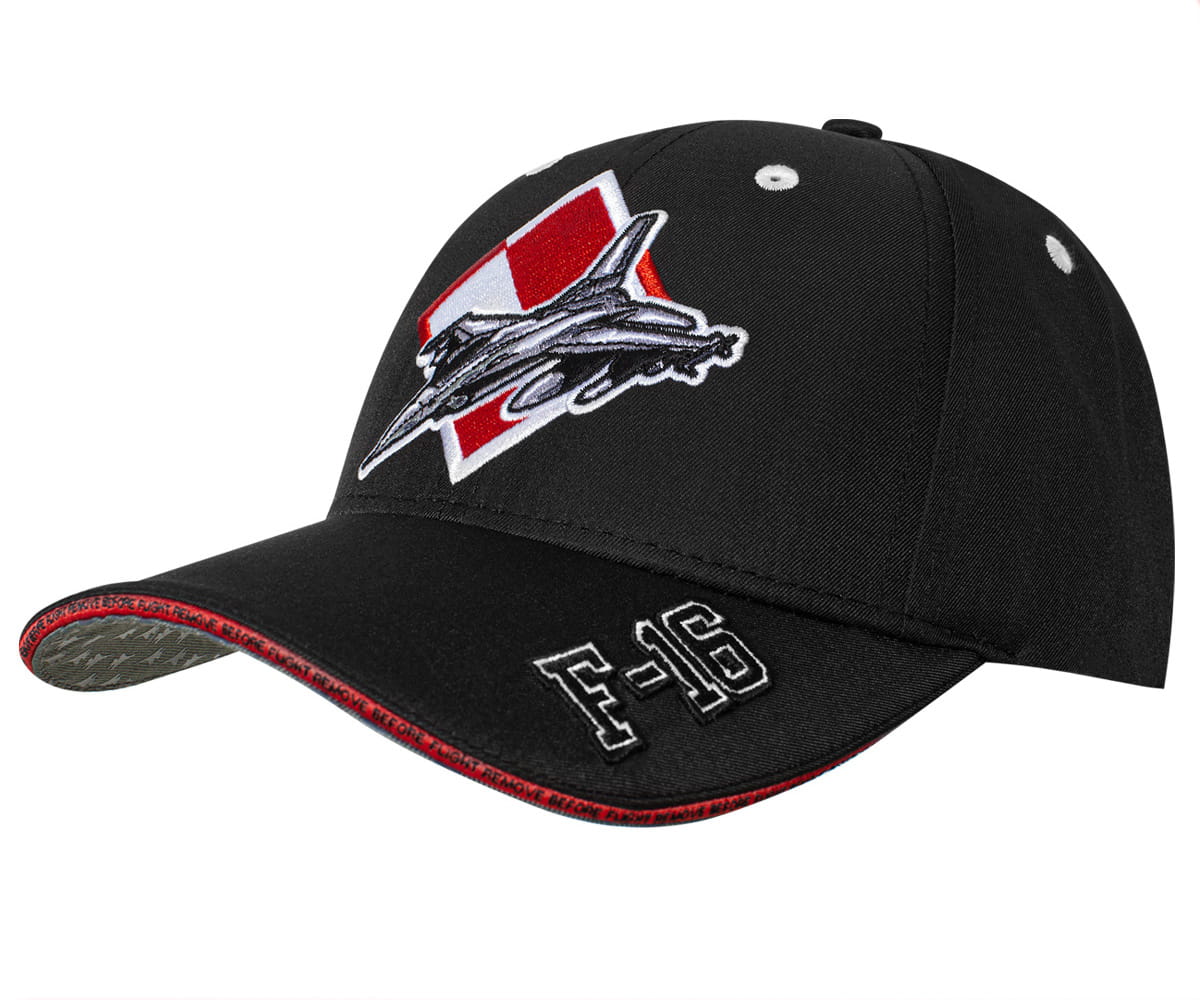 Czarna czapka baseballowa z daszkiem, bejsbolówka, haft F-16
