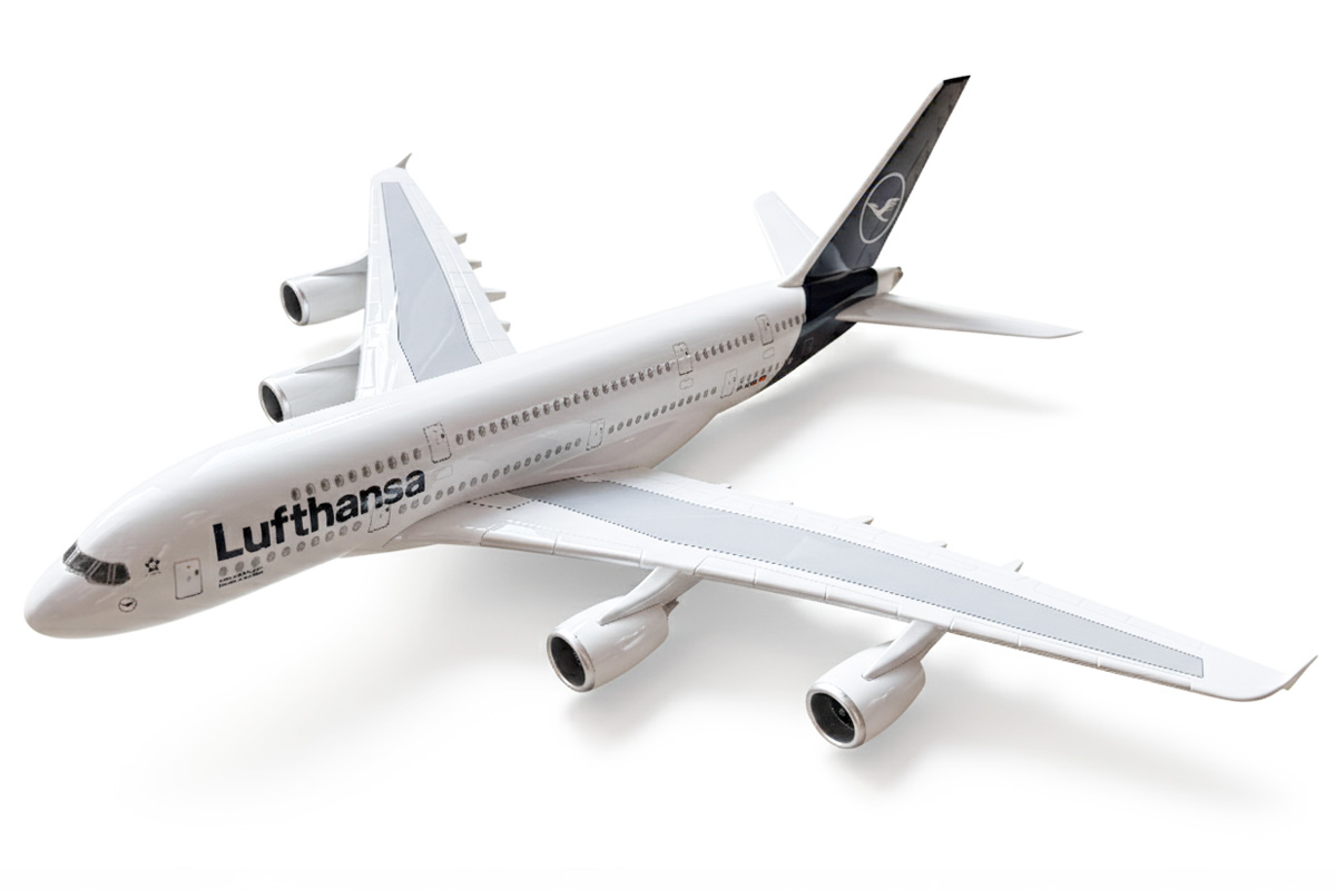 Model samolotu Airbus A380 w barwach linii Lufthansa